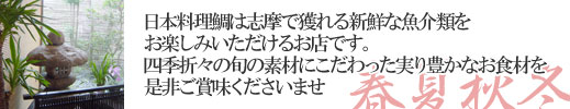日本料理 鯛 〒517-0501 三重県志摩市阿児町鵜方2037-1 TEL/FAX 0599-43-4572